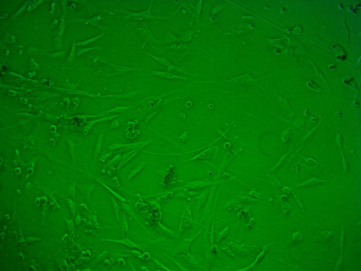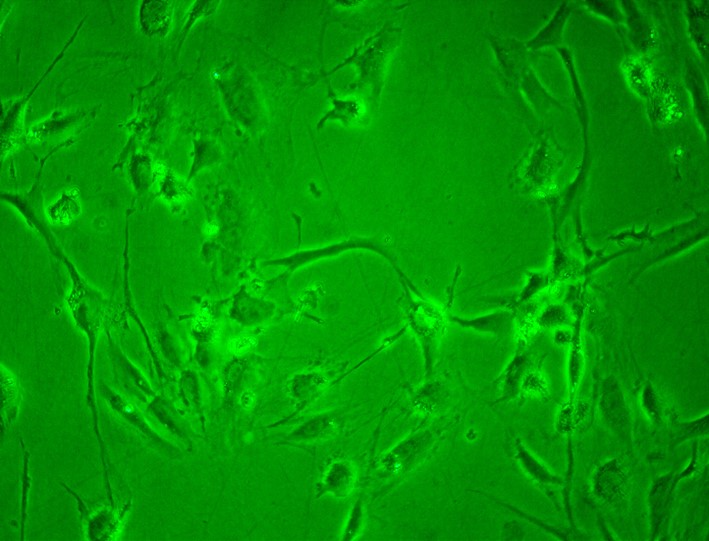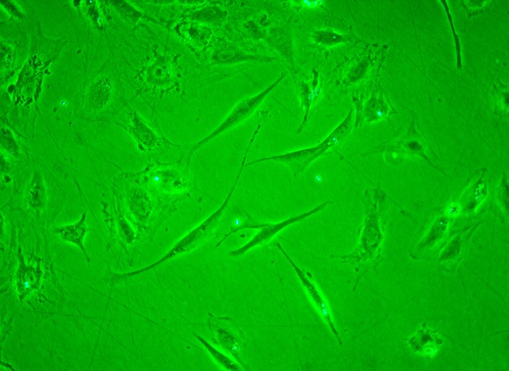 Human Dermal Lymphatic Microvascular Endothelial Cells (cat. HEC03) in culture using Universal Tube Formation Media. Tube formation can be observed.