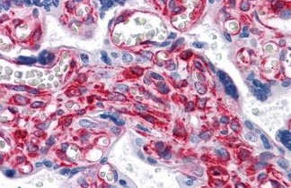 Anti-VCAM1 antibody IHC of human placenta. Immunohistochemistry of formalin-fixed, paraffin-embedded tissue after heat-induced antigen retrieval. Antibody dilution 1:200.