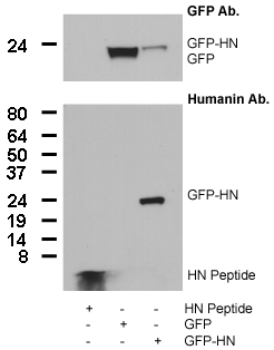 We currently have tested the antibody by Western blotting against the human HN peptide and cell lysates of 293T cells transfected with a GFP tagged HN.