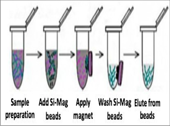 Si-Mag series superparamagnetic silica nano-beads have different sizes range from 80nm to 3 µm to gain diverse binding of small to large DNA molecules. superparamagnetic Fe3O4 as core, low-density silicon modified hydroxy (-SiOH), and a further high specific surface area of the material, making them than conventional magnetic SiO2 microspheres having more excellent nucleic acid binding properties.